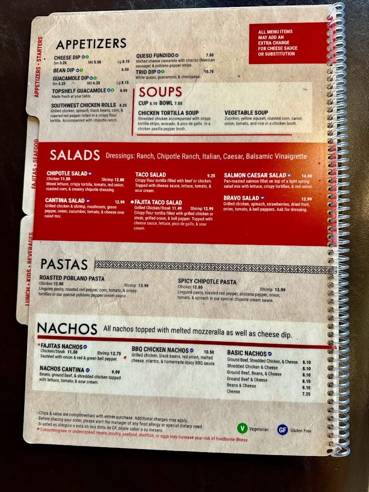 Cantina Bravo Mexican Grille offers a diverse menu with over 100 dishes. Highlights include traditional favorites like enchiladas, tacos, and unique specialties like the Molcajete Mexicano. Each meal showcases fresh ingredients and vibrant flavors, appealing to various tastes.